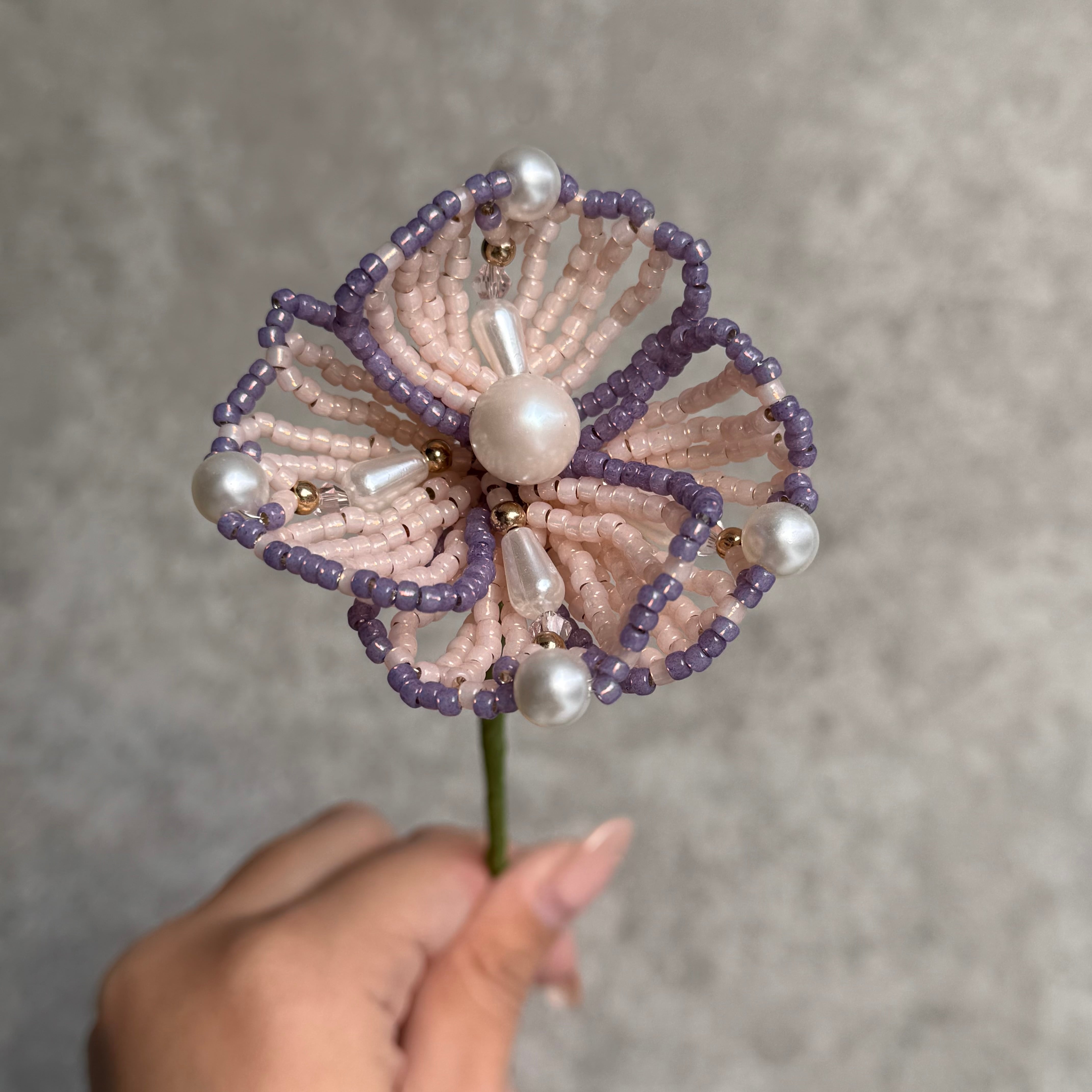ハンドメイド作品のため、ビーズの配置・花の形・サイズ・色味などにわずかな個体差が生じる場合がございます。