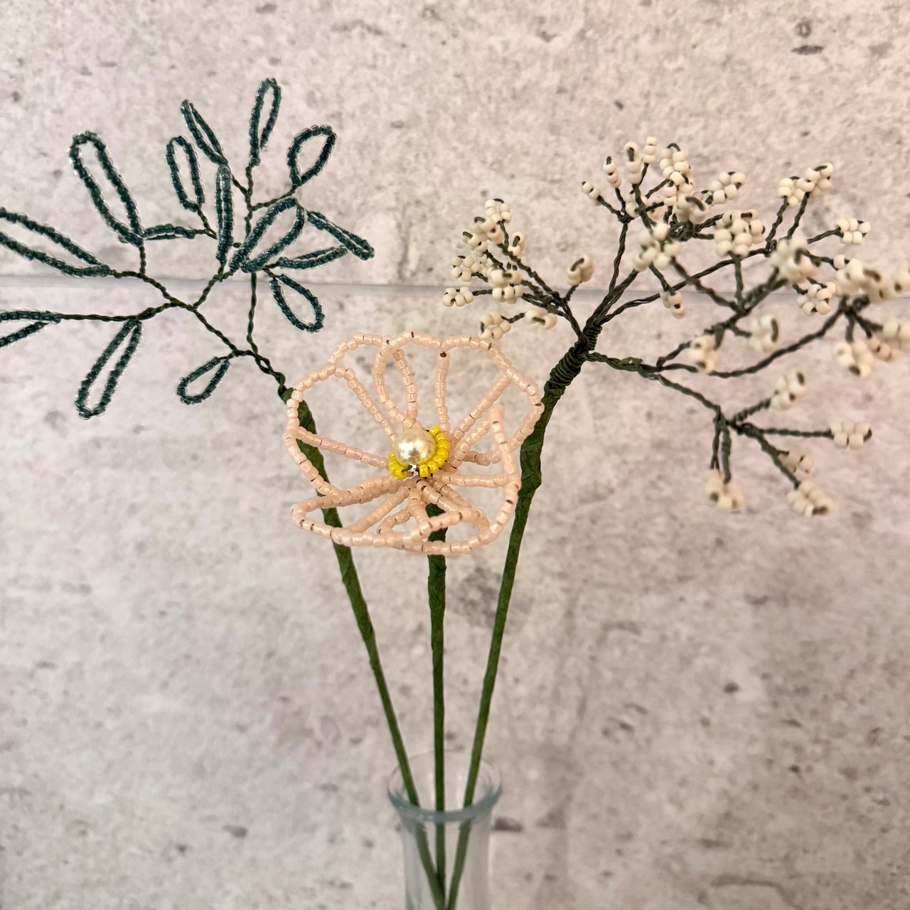 ハンドメイド作品のため、ビーズの配置・花の形・サイズ・色味などにわずかな個体差が生じる場合がございます。