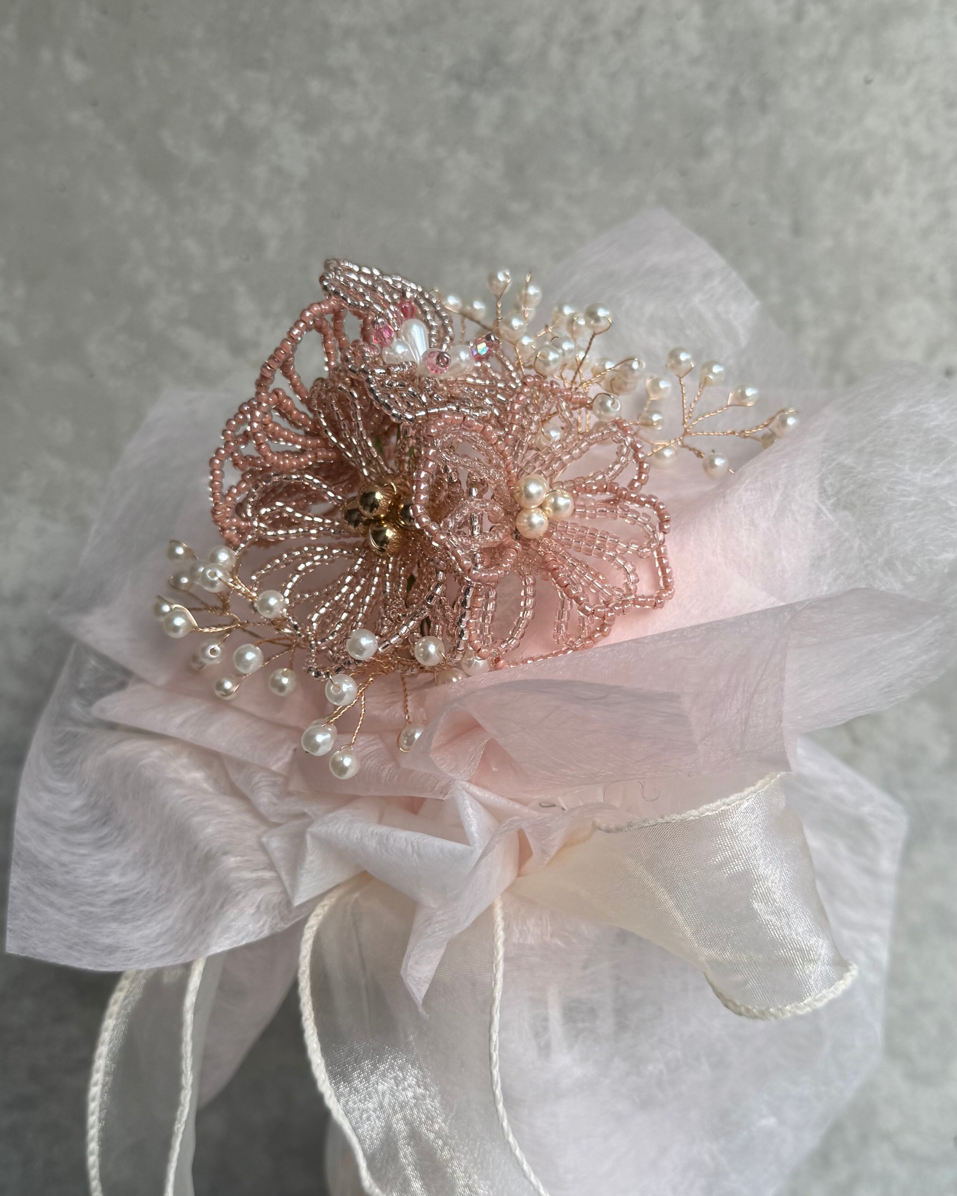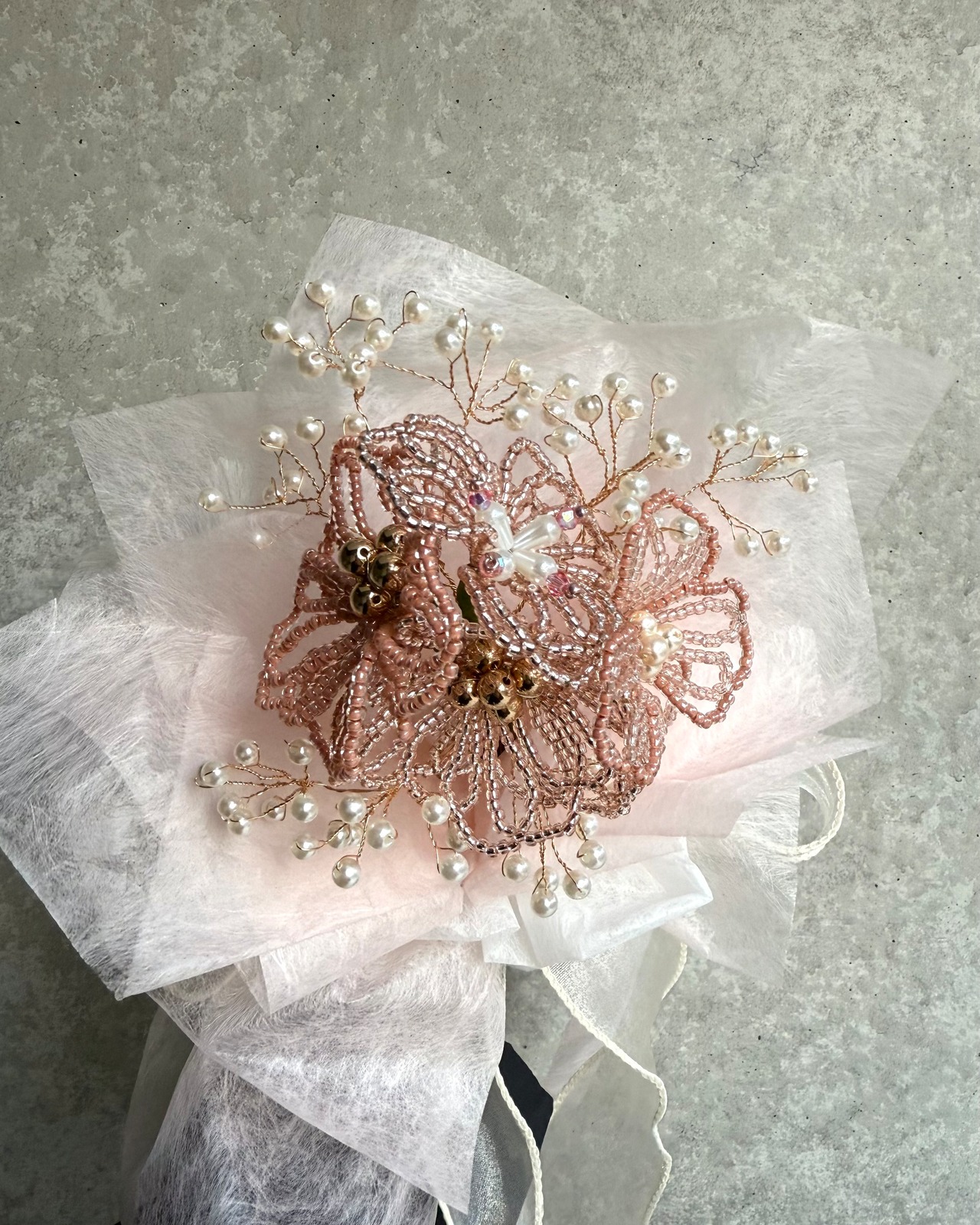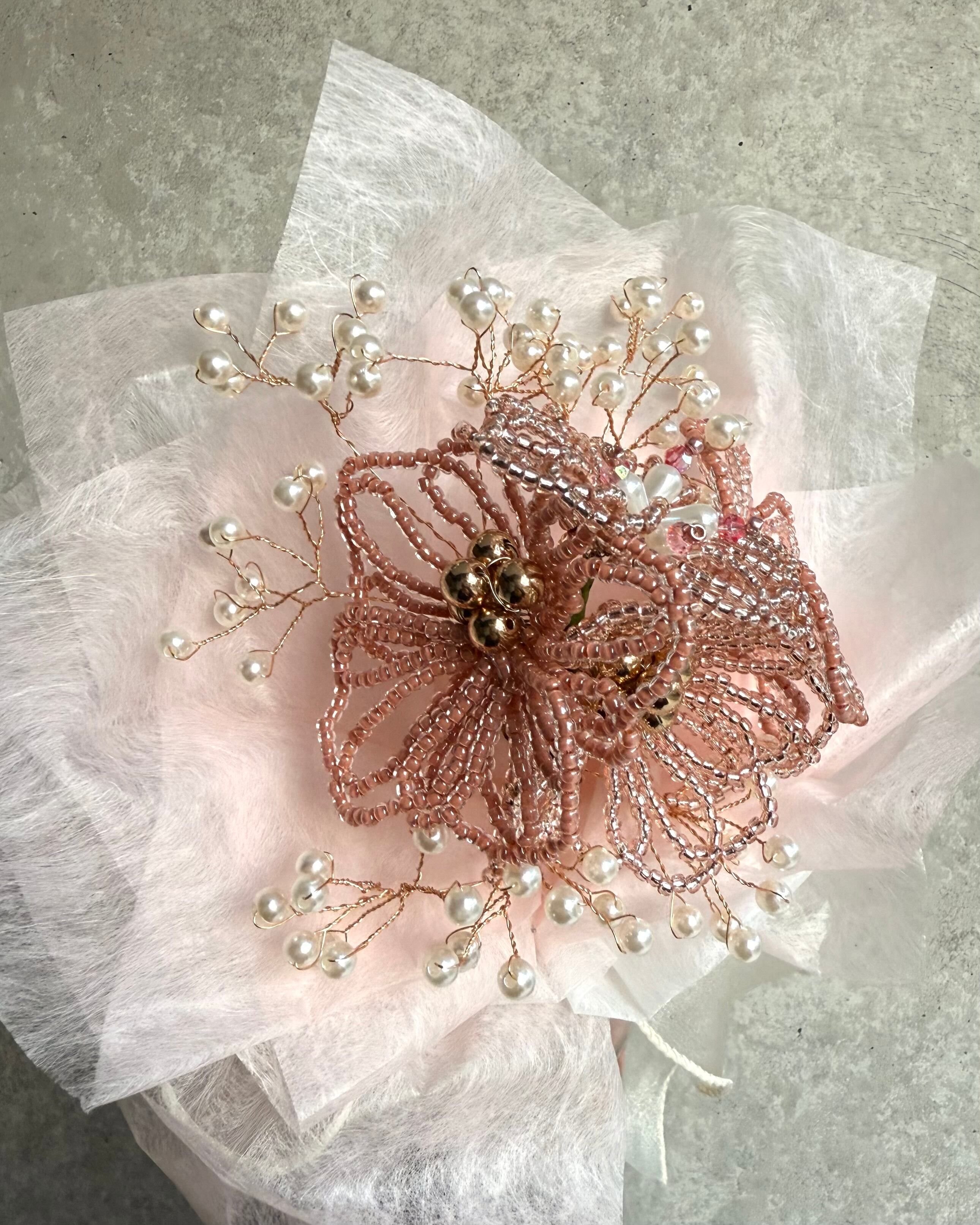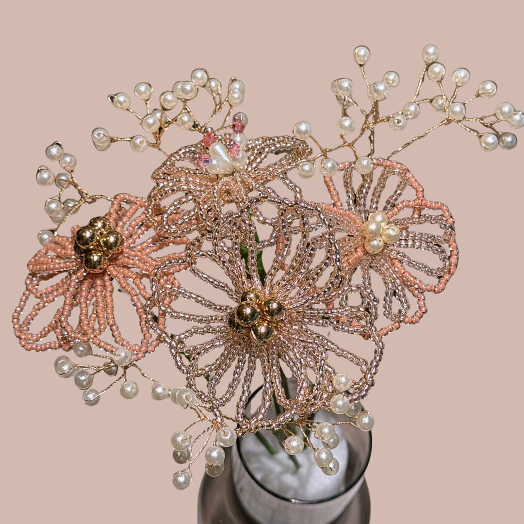 ハンドメイド作品のため、ビーズの配置・花の形・サイズ・色味などにわずかな個体差が生じる場合がございます。