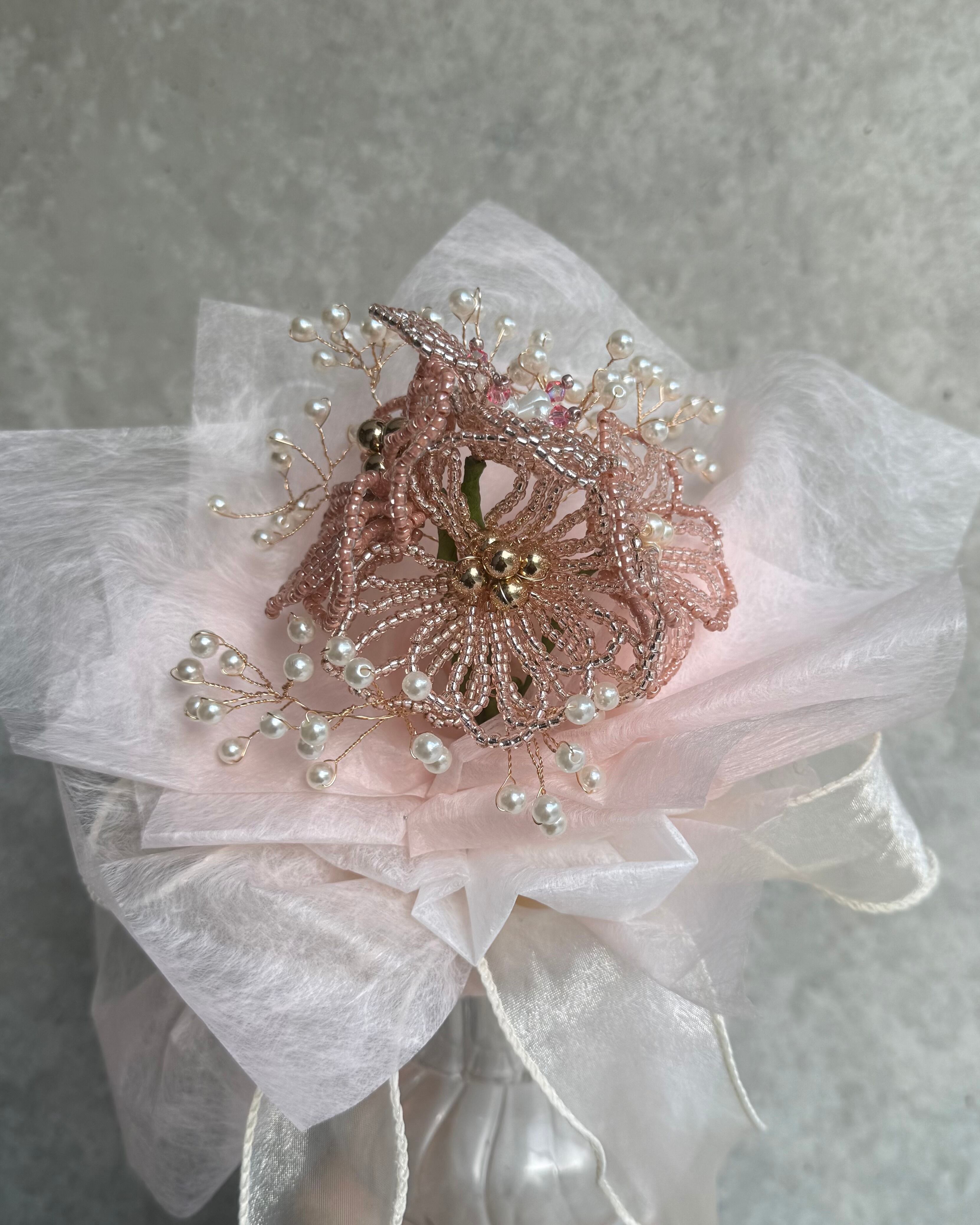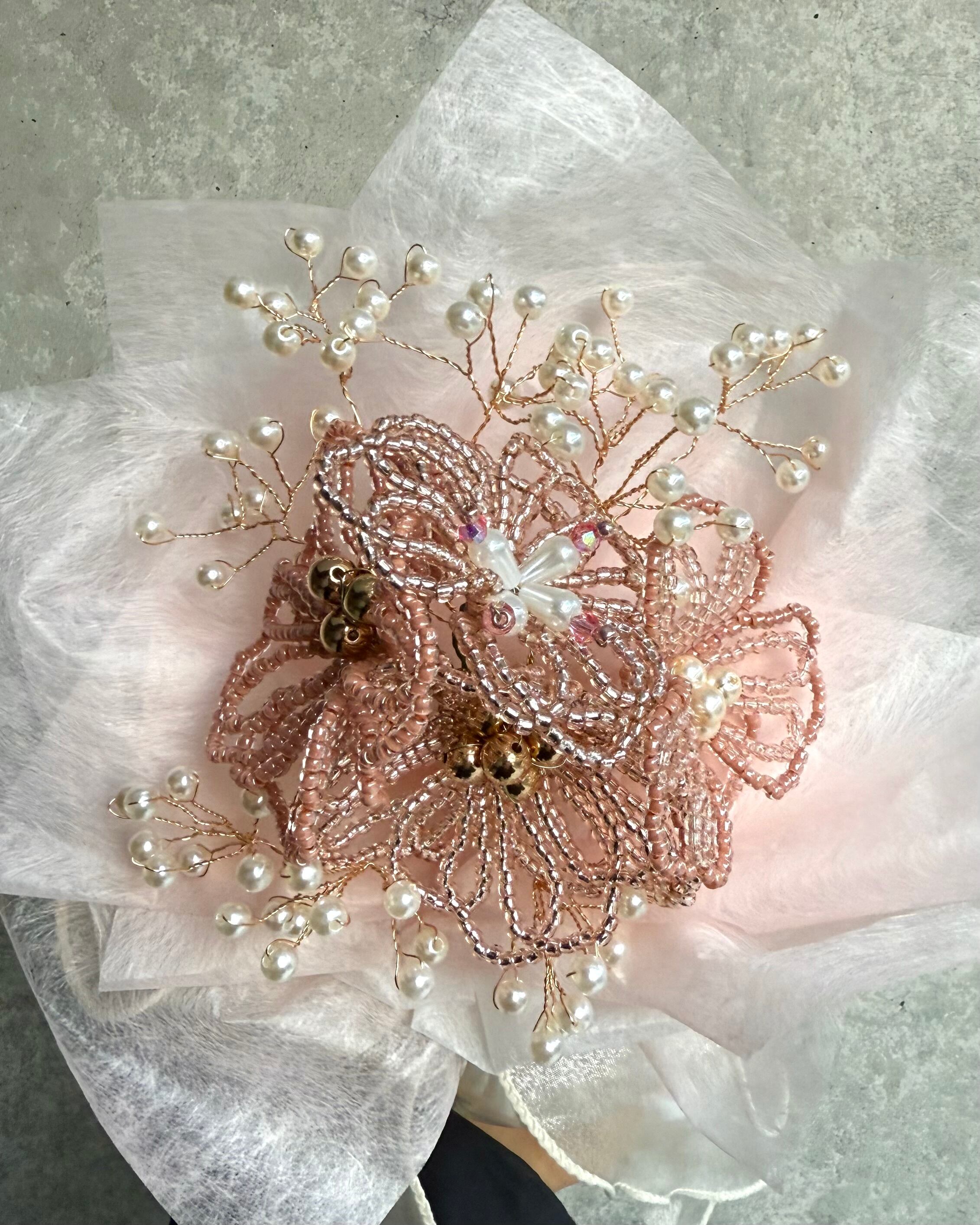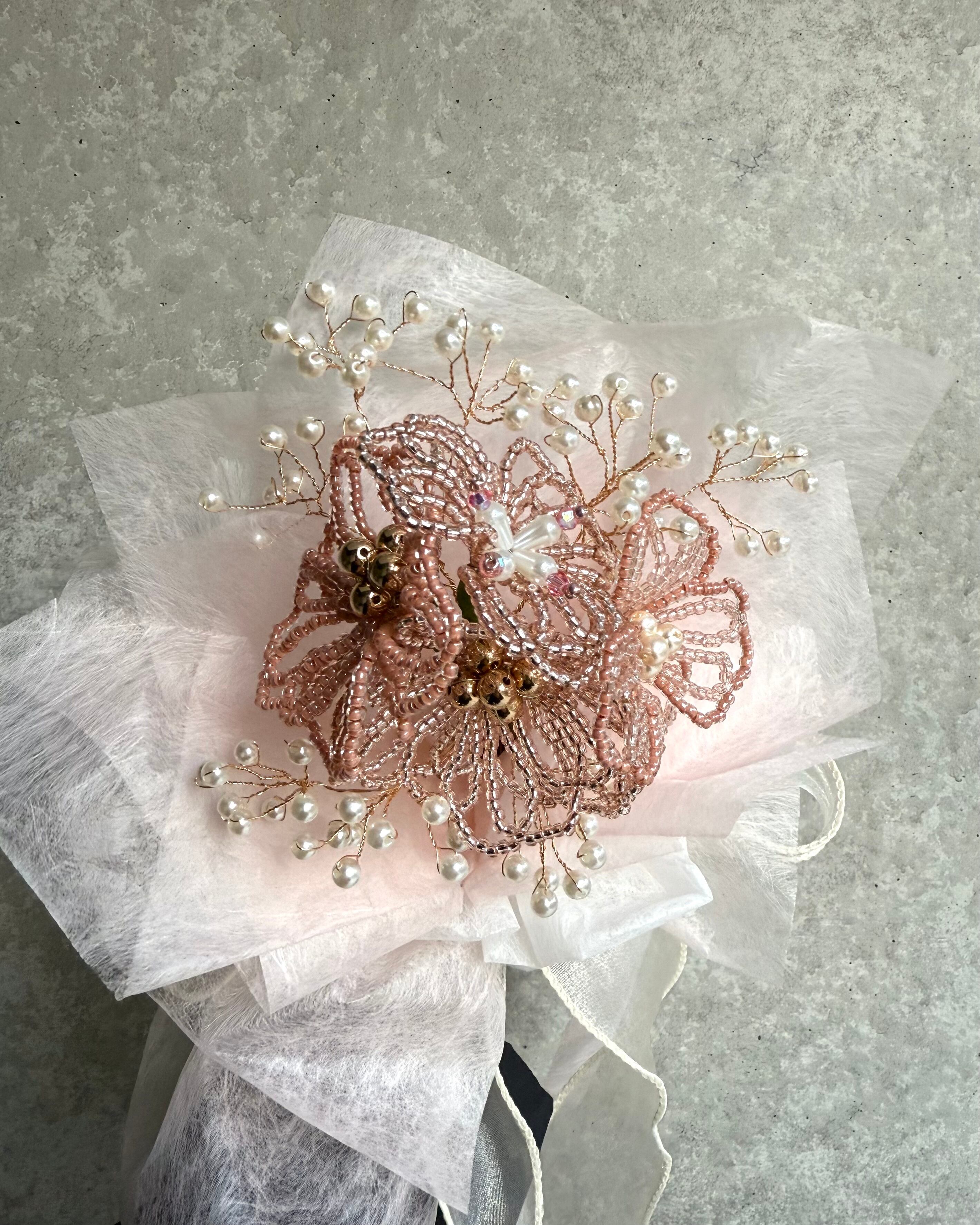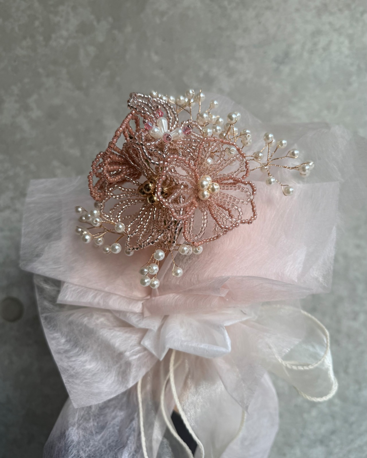 ハンドメイド作品のため、ビーズの配置・花の形・サイズ・色味などにわずかな個体差が生じる場合がございます。