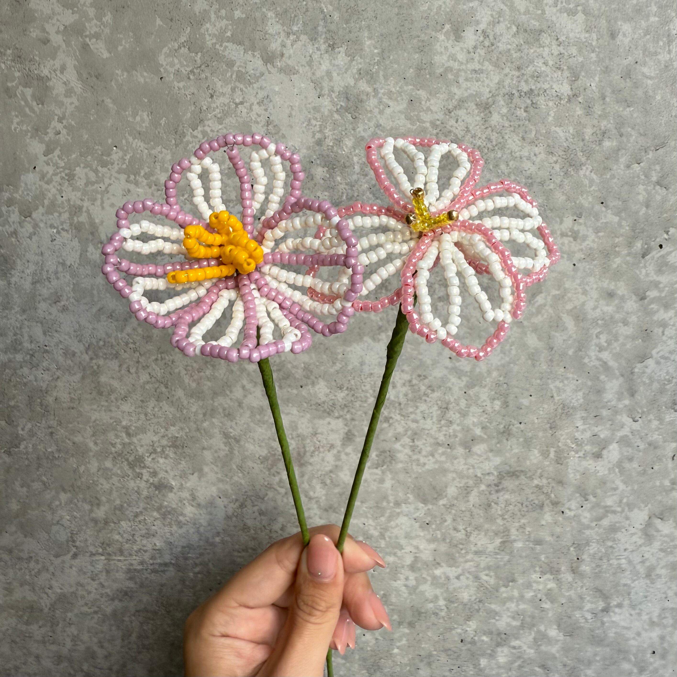 ハンドメイド作品のため、ビーズの配置・花の形・サイズ・色味などにわずかな個体差が生じる場合がございます。