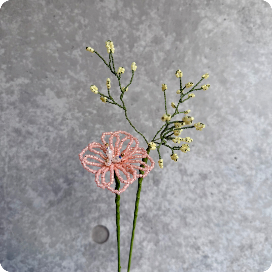 ハンドメイド作品のため、ビーズの配置・花の形・サイズ・色味などにわずかな個体差が生じる場合がございます。